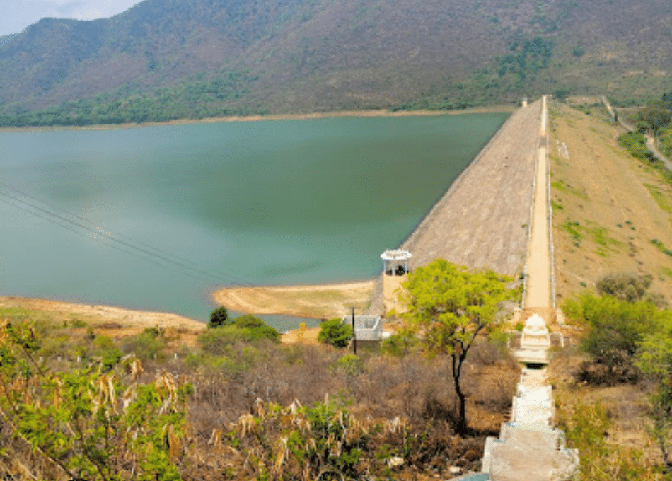 The dam is surrounded by lush green forests and hills, which add to its natural beauty. The crystal-clear water of the Tunga River flowing through the dam provides a picturesque view, making it a popular tourist destination in the region. Dense forests, home to several species of flora and fauna, surround the dam. Visitors can explore the woods and spot animals like deer, leopards, and monkeys.