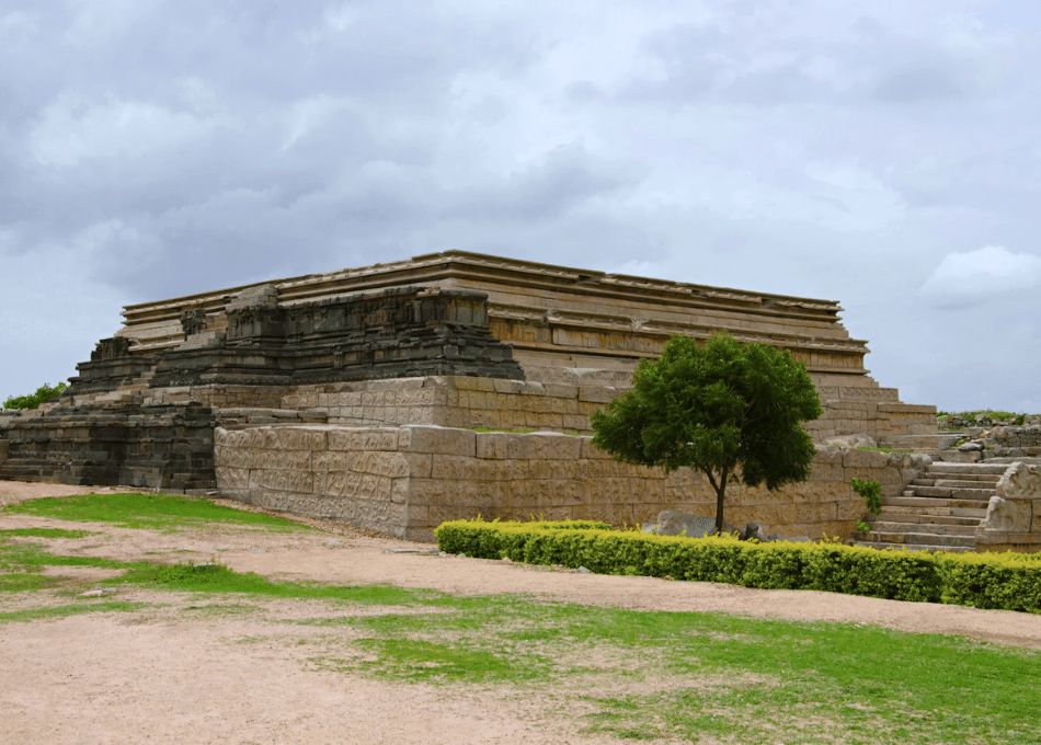 Mahanavami Dibba is a historical monument located at Hampi in Karnataka, India. It is an ancient temple complex constructed in the 16th century by the Vijayanagara rulers. The temple complex is a stepped pyramid structure made of granite stones. It is believed to have been used by the Vijayanagara rulers for royal ceremonies and coronations. The system is also said to have been used to store the valuable items of the royal family.