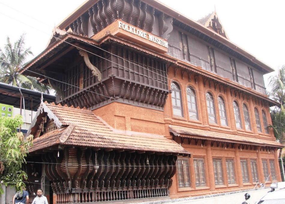 The Kerala Folklore Museum is unique in Thevara, Kochi, in Kerala, India. It is dedicated to preserving and showcasing Kerala's rich cultural heritage and folklore through exhibits, including traditional costumes, jewellery, musical instruments, sculptures, and paintings.
