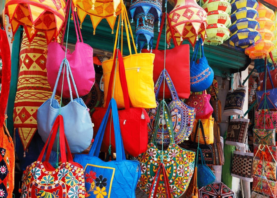 The traditional art of applique work is unique to Pipili and is practised by the town's artisans. The craft involves cutting and stitching pieces of fabric in intricate designs and patterns, and the material is then sewn together to create beautiful and colourful designs. The artisans of Pipili use bright and vibrant colours such as red, yellow, orange and green to create their intricate designs.